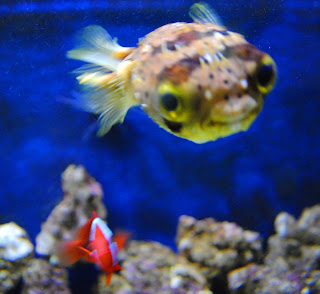 And these guys here are from my friends fish tank. Puff fish are my favorite kind of fish, so I'm always very happy to see this guy! He's actually fairly big, about the size of a shoe. I am sure he gets much bigger when he puffs up! His little orange buddy to the left felt that he needed to be in the photo too
